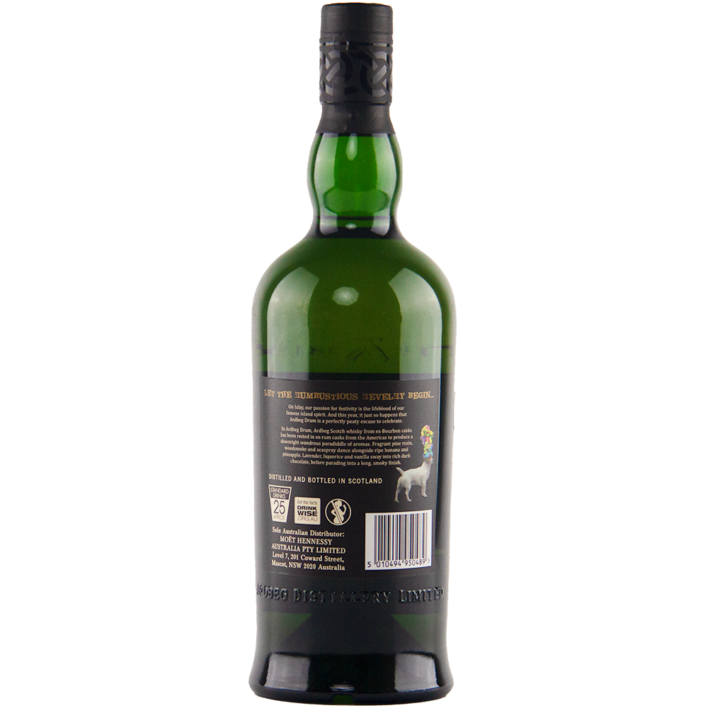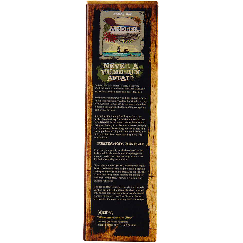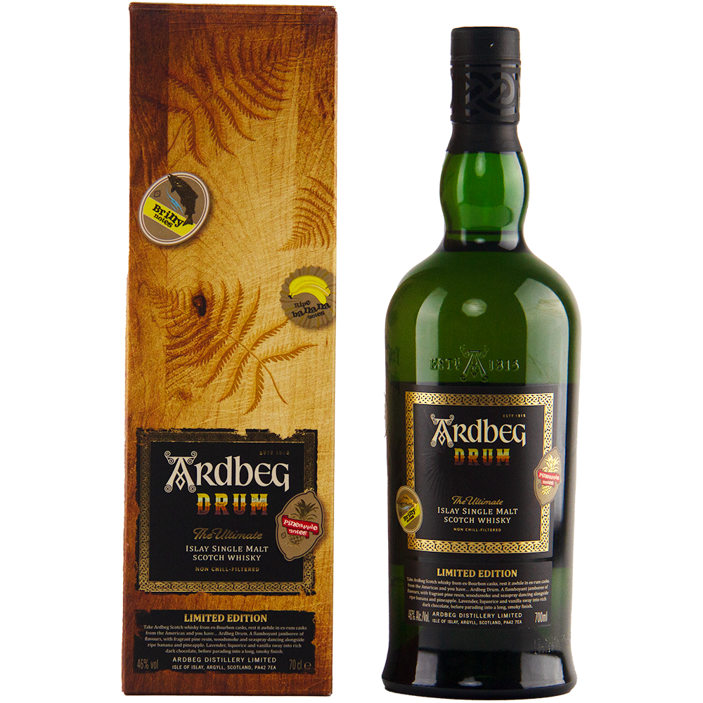 Ardbeg Drum is a limited edition release that brings a carnival of flavour to Islay’s iconic peated profile. For the first time in the distillery’s history, Ardbeg matured its classic ex-bourbon cask whisky in ex-rum casks from the Americas. This vibrant twist infuses the spirit with exotic sweetness and spice while maintaining the smoky intensity fans expect. Bottled at 46% ABV and non-chill filtered, Ardbeg Drum was released to celebrate Ardbeg Day 2019 with a jubilant nod to the island’s festive spirit.