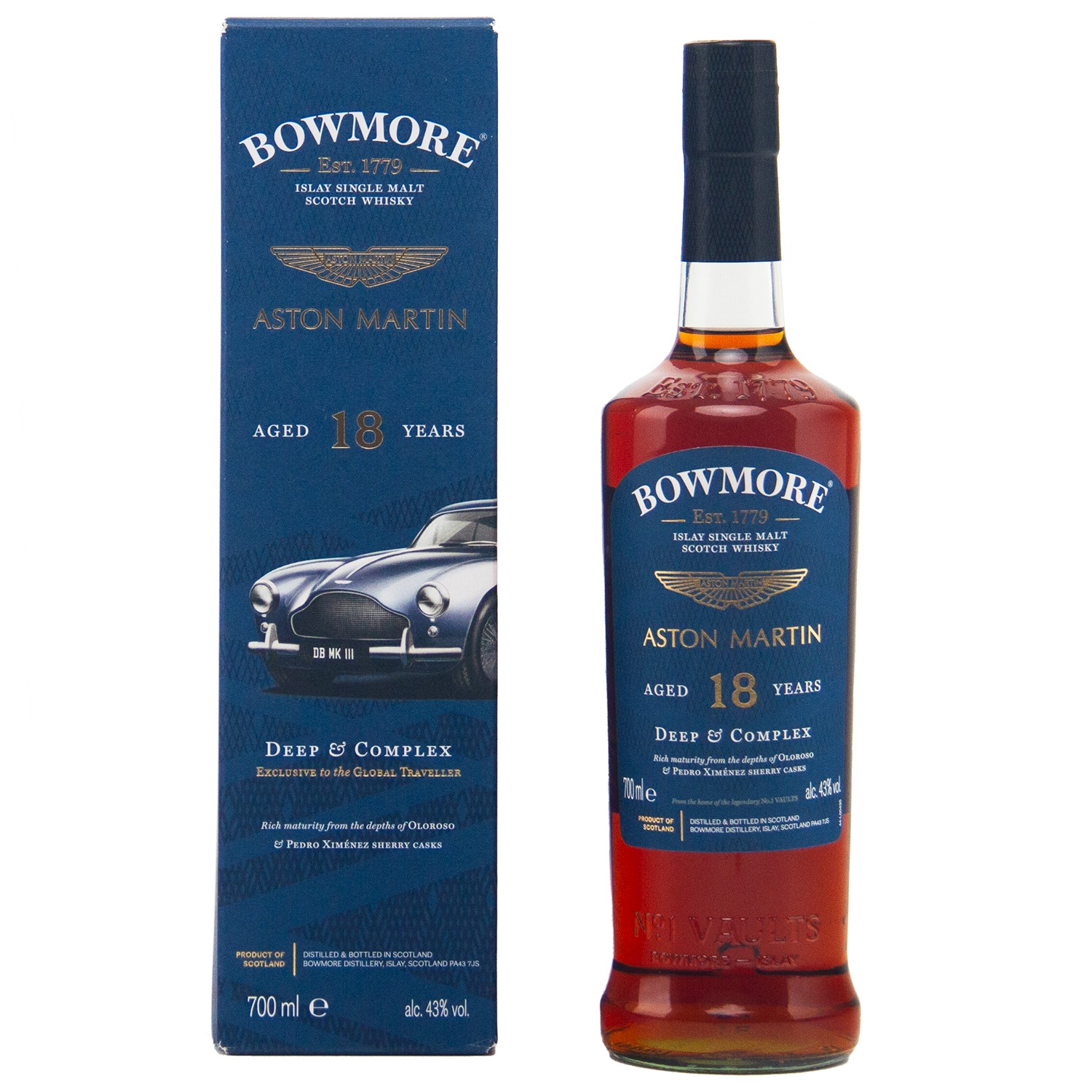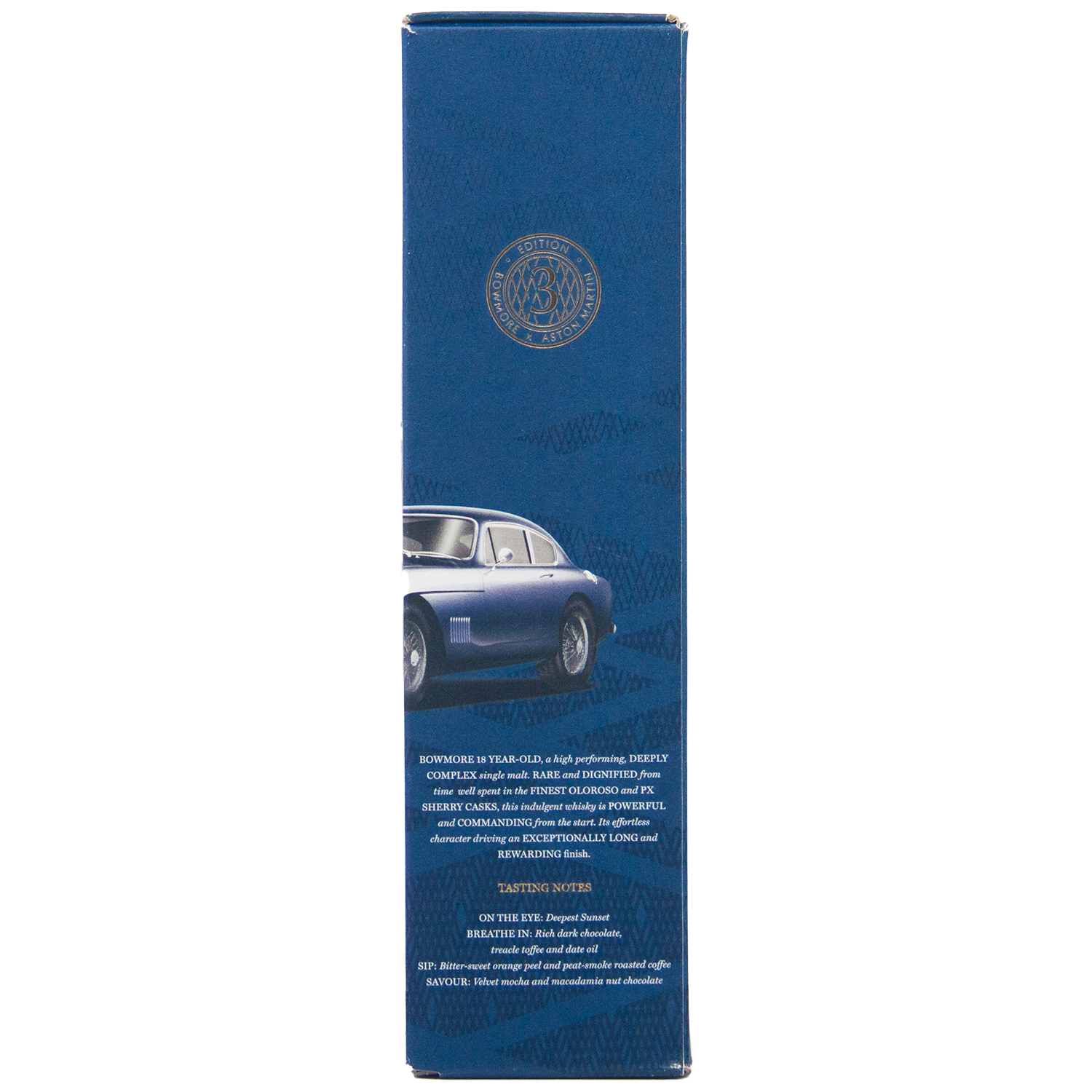 Matured in a combination of Oloroso and Pedro Ximénez sherry casks and bottled at 43% ABV, Bowmore 18 Year Old Aston Martin Edition #3 is the third release in the Bowmore x Aston Martin series. This “Deep & Complex” expression draws inspiration from the iconic 1957 Aston Martin DB Mk III, pairing traditional Islay whisky craftsmanship with automotive elegance and innovation. A limited edition bottling, it showcases a rich, sherried profile with refined coastal peat.
