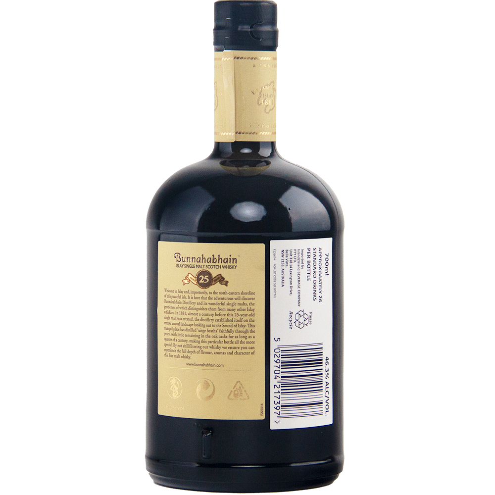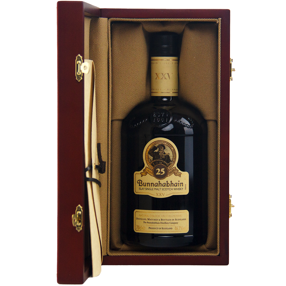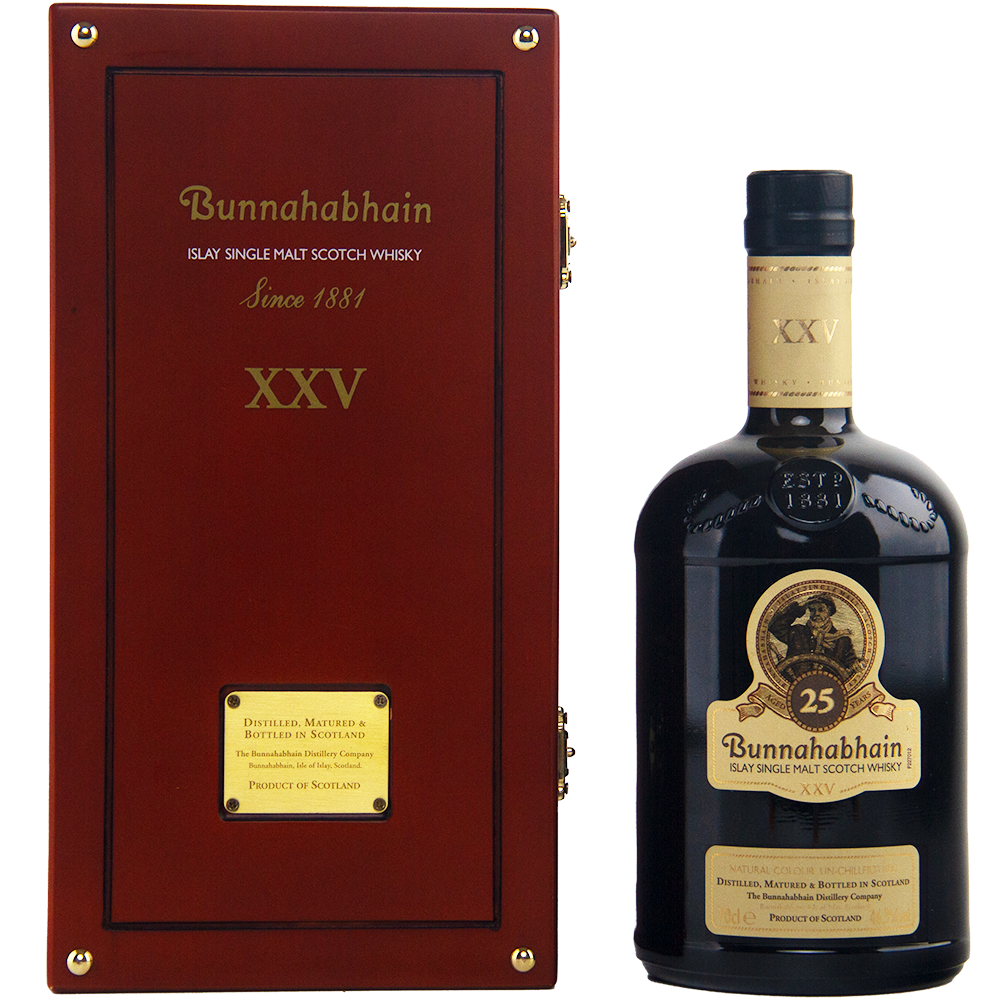 Bunnahabhain XXV 25 Year Old is a luxurious Islay single malt, aged for a quarter-century and presented in an elegant wooden case. This limited-edition release showcases Bunnahabhain’s signature unpeated style, emphasising rich sherry maturation and refined complexity.