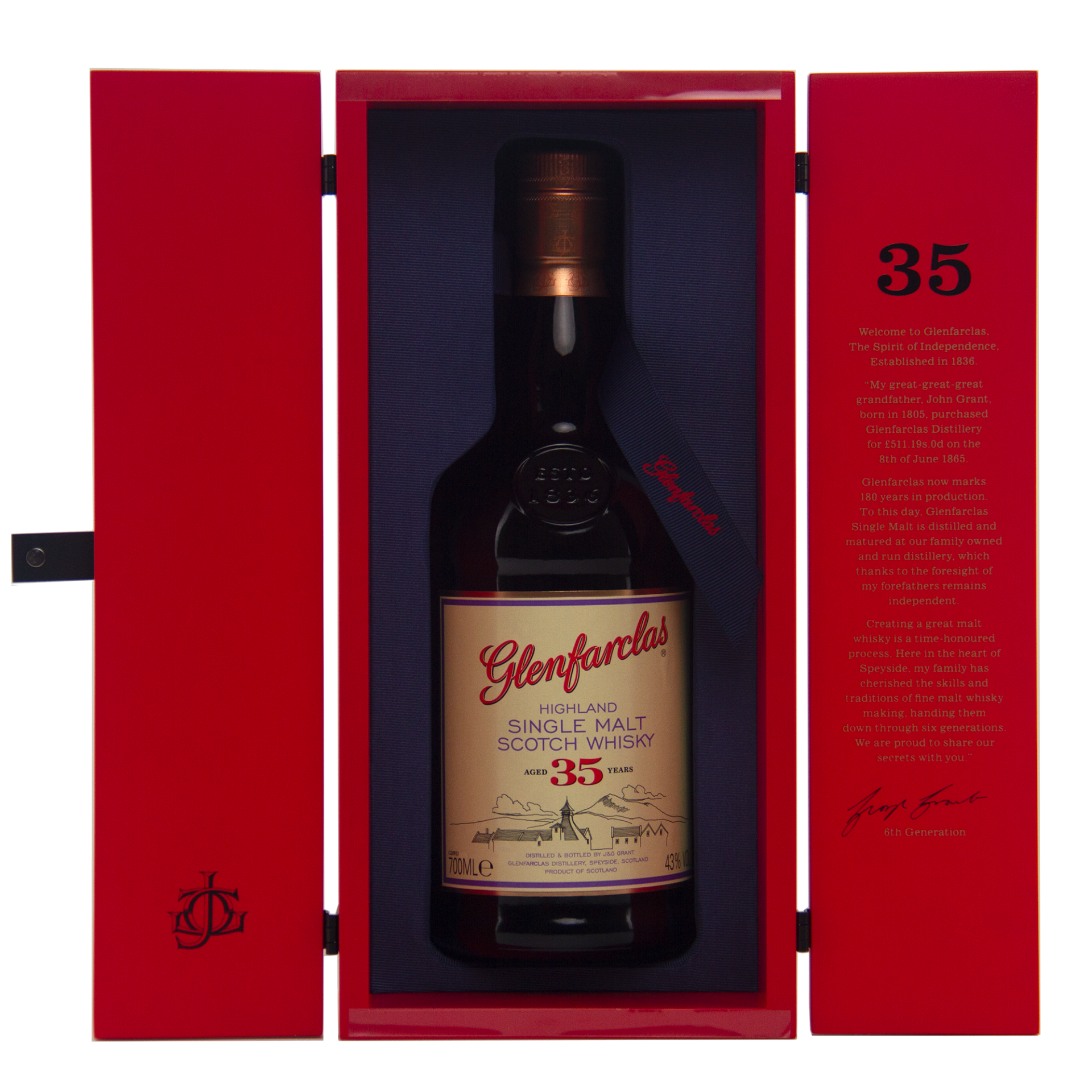 Matured for 35 years in Oloroso sherry casks, the Glenfarclas 35 Year Old Warehouse Edition is a rare and luxurious single malt from one of Scotland’s last family-owned distilleries. This limited-edition release is presented in a striking red wooden box, designed to replicate the iconic Glenfarclas warehouse doors. Rich, full-bodied, and beautifully balanced, this expression showcases the sherried elegance and traditional craftsmanship that define Glenfarclas.