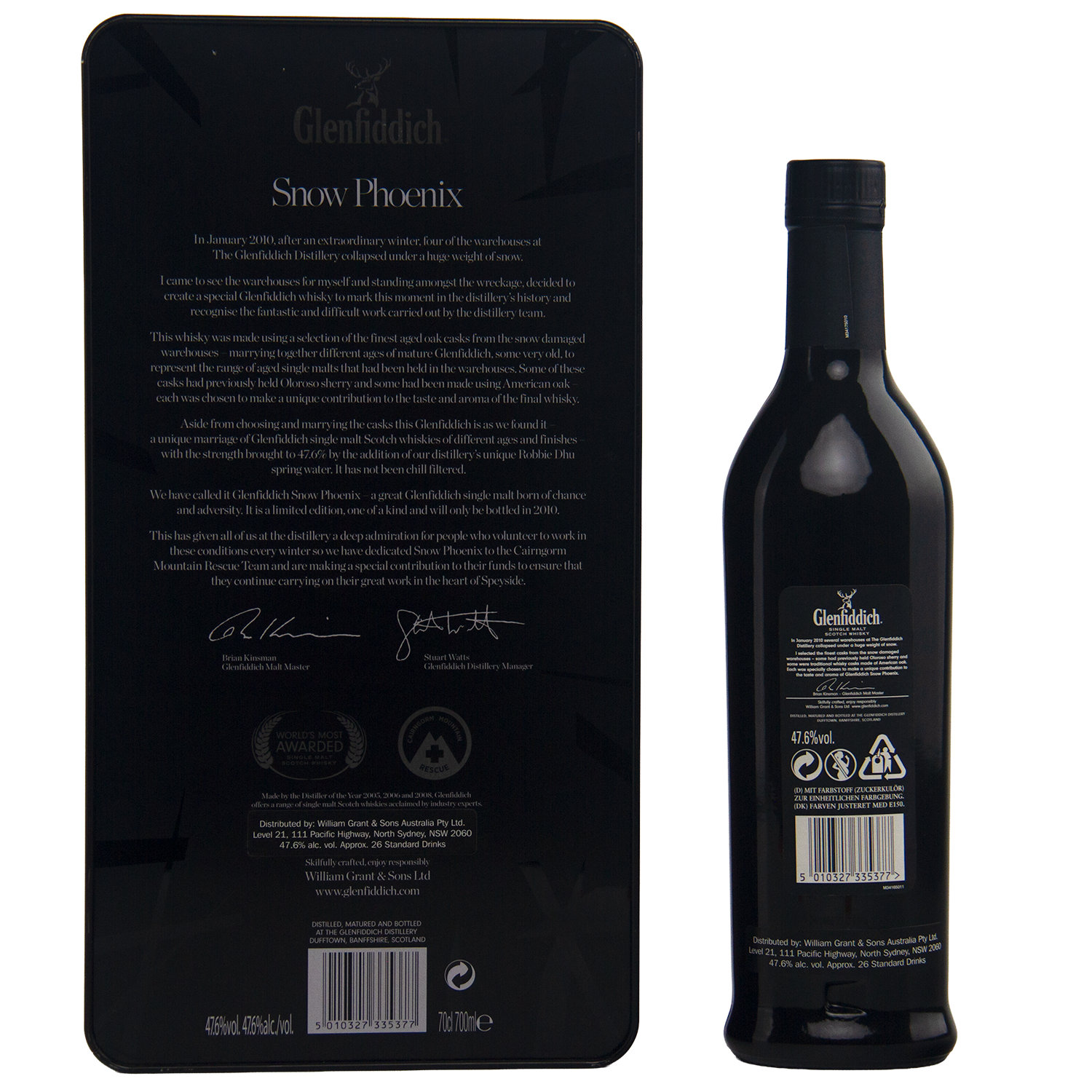 The Glenfiddich Snow Phoenix is a limited-edition single malt whisky born from a moment of resilience and innovation in the distillery’s history. On January 7, 2010, after an unprecedented snowfall in Speyside, the weight of snow caused several warehouse roofs to collapse. In response, Glenfiddich’s Malt Master carefully selected and married together ex-bourbon and Oloroso sherry casks aged between 13 and 30 years to create a whisky that symbolizes the distillery’s pioneering spirit.