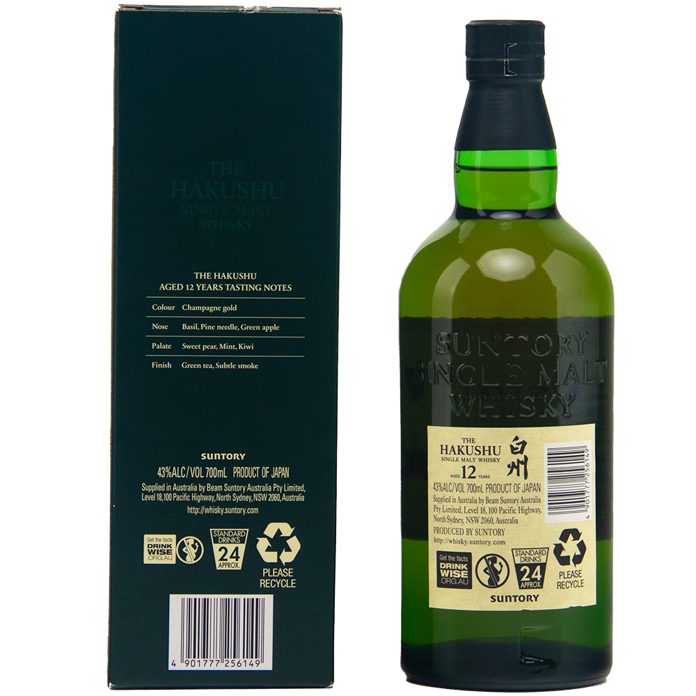 Known for its crisp and herbal profile, Hakushu 12 strikes a perfect balance between gentle smoke, orchard fruit, and natural forest character. Bottled at 43% ABV, this version is increasingly difficult to find as newer packaging has replaced this original design—adding further value for collectors.