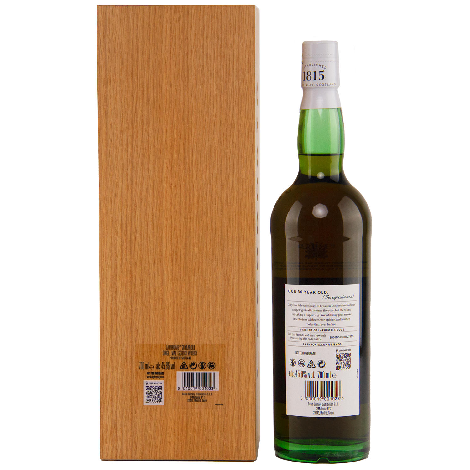 The Laphroaig 30 Year Old (2024 Release) marks the beginning of a new annual series from the iconic Islay distillery. Matured in a carefully selected mix of American oak barrels and European sherry hogsheads and butts, this rare expression showcases the evolution of Laphroaig’s trademark peat over three decades of ageing. Bottled at 45.8% ABV, it balances the distillery’s unmistakable smoky intensity with refined layers of fruit, spice, and oak complexity.