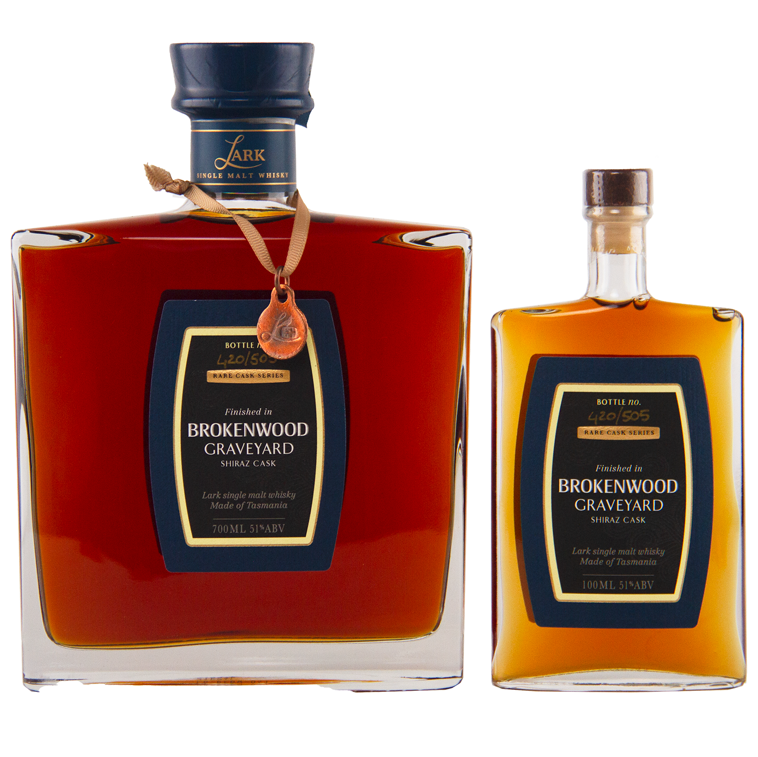 The Lark Brokenwood Graveyard Shiraz Rare Cask 2021 is the third release in Lark’s celebrated Rare Cask Series, a limited edition of only 505 bottles. This single malt was initially matured at Lark’s Coal Valley Distillery before being expertly finished in two casks that previously held Brokenwood’s legendary Graveyard Vineyard Shiraz, sourced from the Hunter Valley. Bottled at 51% ABV, this release perfectly unites the richness of Tasmanian single malt with the depth and vibrancy of Australia’s most iconic shiraz. Each bottle was accompanied by a 100ml sample, with this example being bottle 420 of 505.