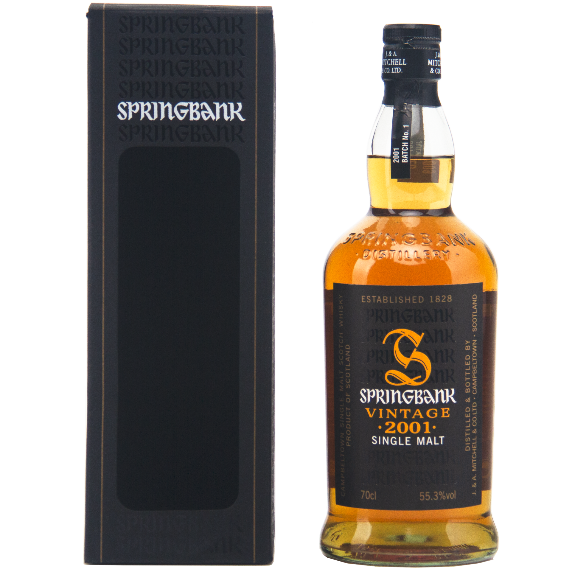 Springbank Vintage 2001 Batch 1 is a limited release single malt Scotch whisky from the renowned Springbank Distillery in Campbeltown. Distilled in 2001 and bottled in 2009, this vintage expression was matured in a combination of sherry and bourbon casks, then bottled at a natural cask strength of 55.3% ABV.