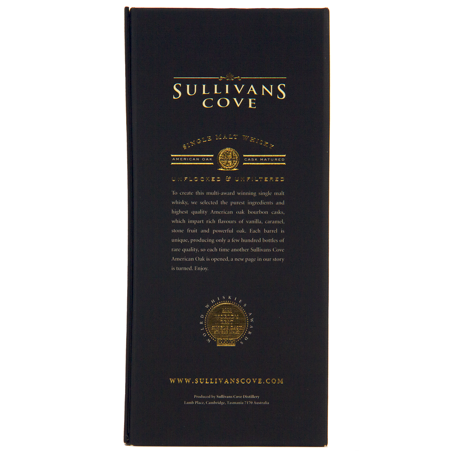 Founded in 1994 in Hobart, Tasmania, Sullivans Cove Distillery has become internationally renowned for producing world-class small-batch single malts. Using 100% Tasmanian ingredients and traditional methods, the distillery gained global recognition after winning “World’s Best Single Malt” at the World Whiskies Awards in 2014. Its single cask bottlings are among the most sought after, with each release showcasing the individuality of the cask and the purity of Tasmanian whisky craftsmanship.