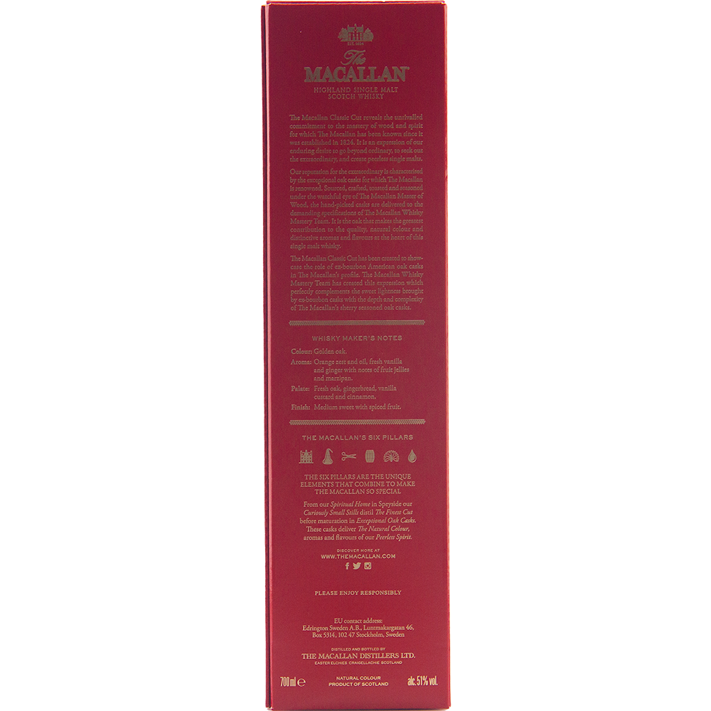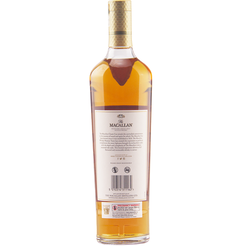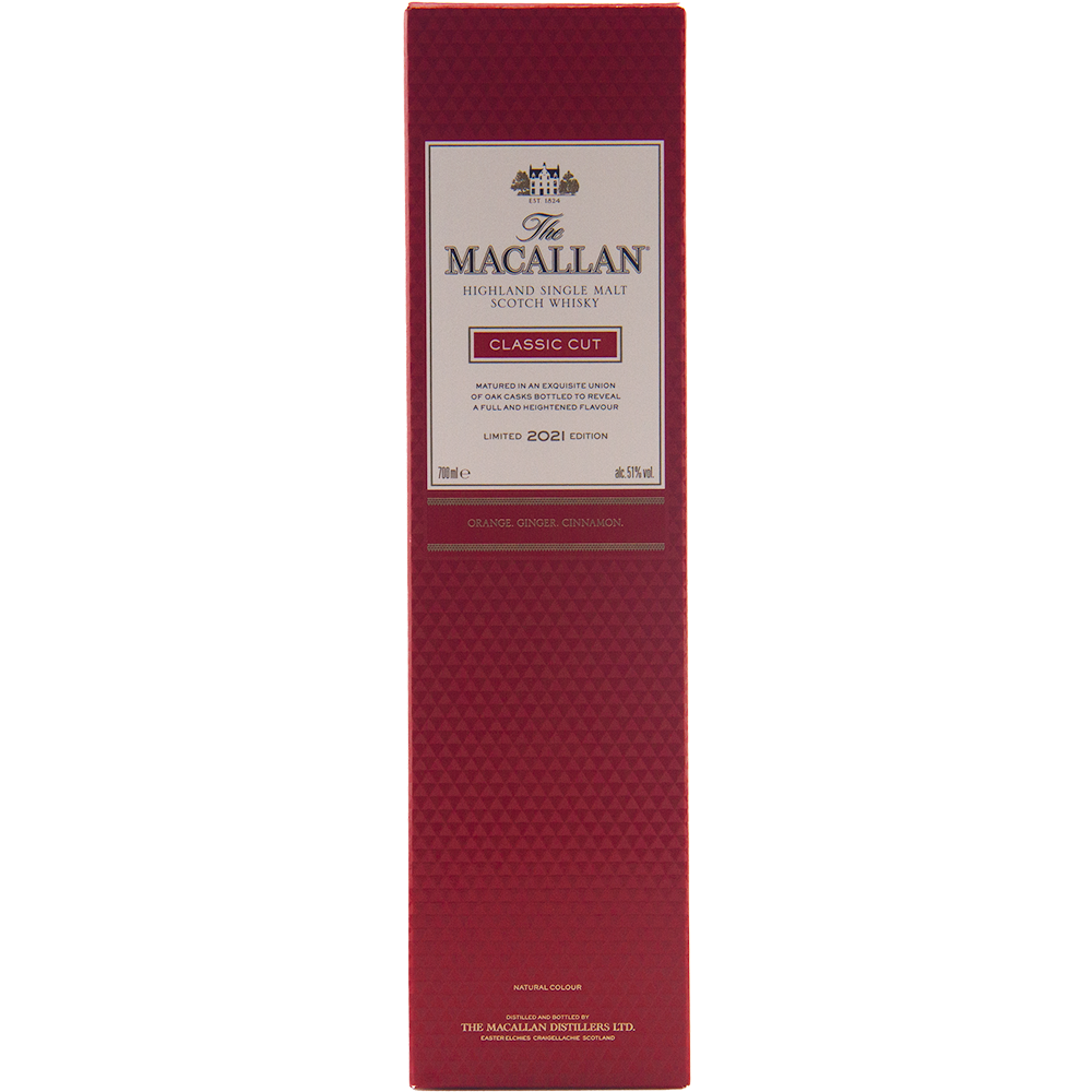 Matured in a combination of ex-bourbon American oak casks and sherry-seasoned American oak casks, The Macallan Classic Cut 2021 is bottled at cask strength (51% ABV) to showcase the influence of these distinct wood types. This annual limited edition was crafted by The Macallan Whisky Mastery Team to highlight sweet lightness from bourbon casks balanced by the depth of traditional sherry cask richness.