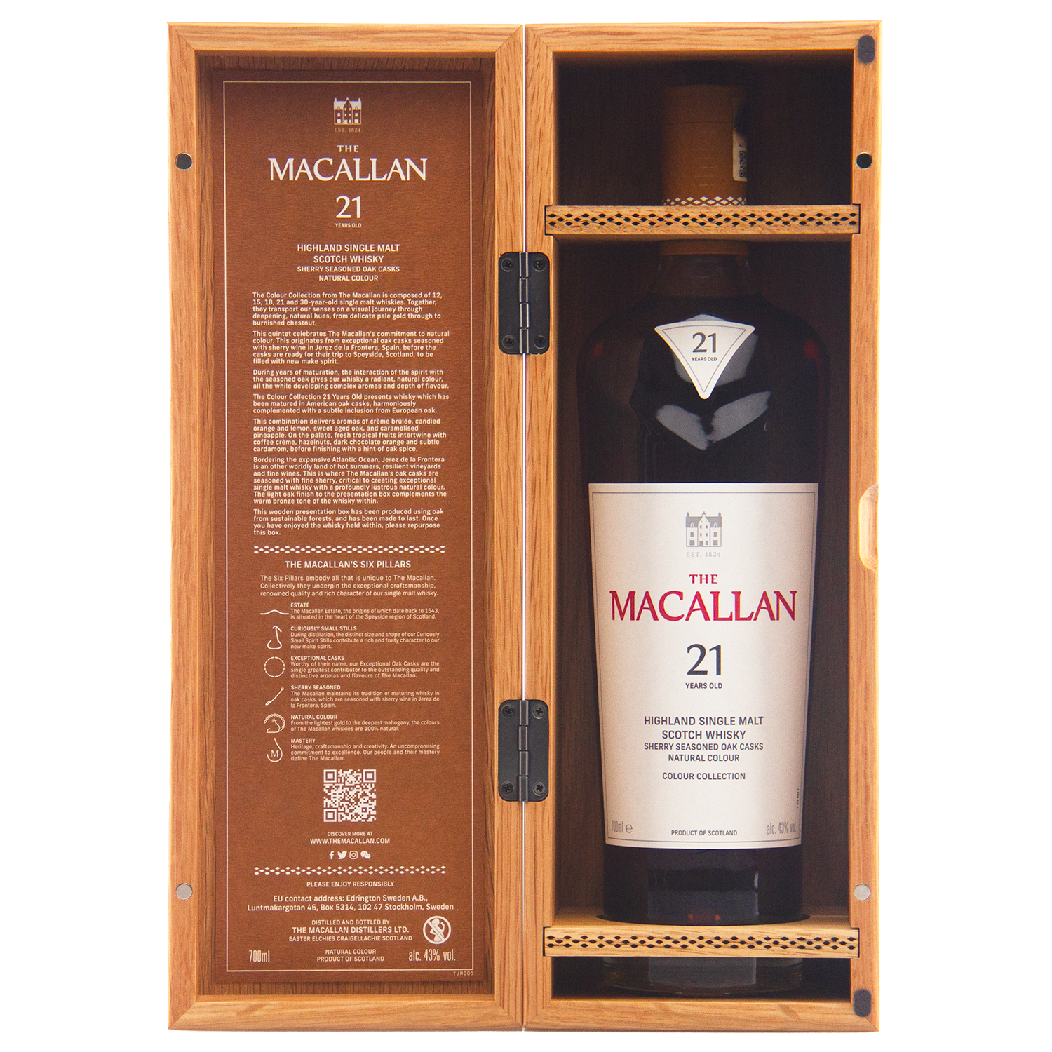 The Macallan Colour Collection is a distinguished series of single malt Scotch whiskies that celebrates the distillery’s unwavering commitment to natural colour and sherry seasoning. Each expression in the collection matures in carefully selected sherry-seasoned oak casks from Jerez de la Frontera, Spain, delivering a spectrum of colours and flavour profiles that deepen with age. From the approachable vibrancy of the 12 Year Old to the refined elegance of the 21 Year Old, the Colour Collection showcases the artistry and tradition of The Macallan.